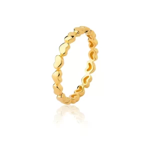 Anel em Ouro 18k Coração com Bolinhas Trabalhado