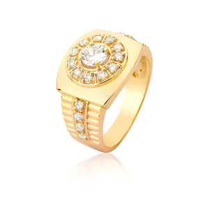 Anel Solitário com Pedras Cravejadas em Ouro Amarelo 18k