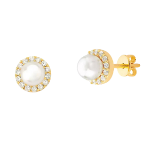 Brincos de Perola com Pedra de Zircônia em Ouro 18K