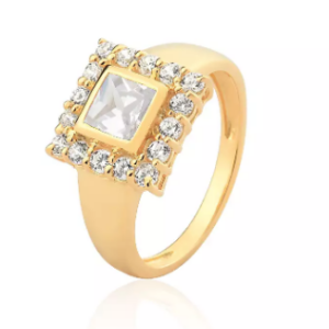 Anel com Solitario Pedras Cravejadas em Ouro Amarelo 18k