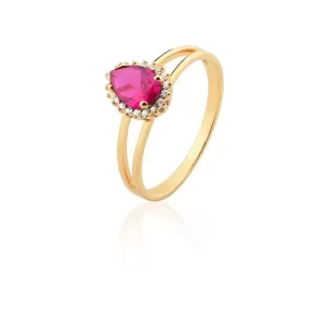Anel Solitario com Pedra de Coração em Ouro 18K