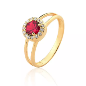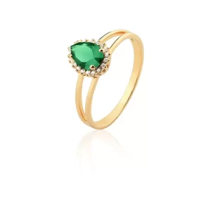 Anel Solitário com Pedras Cravejadas em Ouro Amarelo 18k