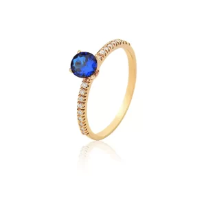 Anel Solitário com Pedras Cravejadas em Ouro Amarelo 18k