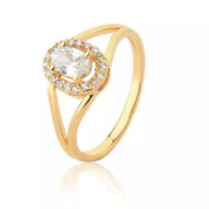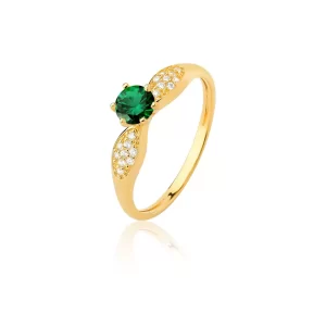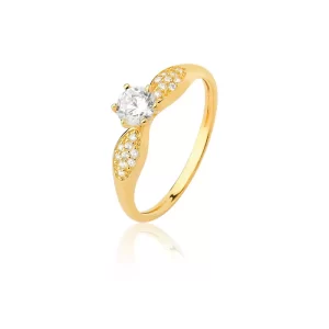 Anel Solitário com Pedras Cravejadas em Ouro Amarelo 18k