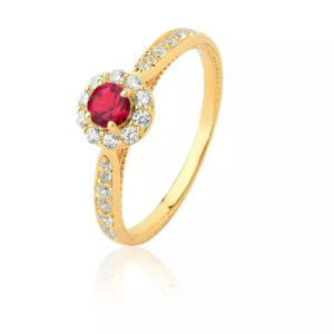 Anel Solitario com Pedras Cravejadas em Ouro 18K