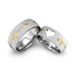 Alianças Compromisso Prata Diamantadas Coração Vazado e Batimento