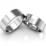 “Explore nossas Alianças de Compromisso em Prata Polidas com Quadrado de Pedras. Um design geométrico sofisticado e pedras brilhantes simbolizam a solidez e o brilho do amor que vocês compartilham.”