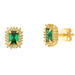 Ilumine-se com a beleza atemporal dos nossos Brincos de Esmeralda Sintética em Ouro 18k, acentuados por deslumbrantes pedras de zircônia.
