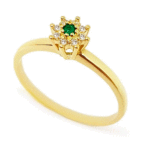 “Anel Chuveiro Ouro 18k com Diamantes e Esmeralda – Luxo Radiante”