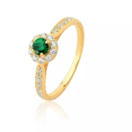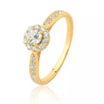 Anel Solitario com Pedras Cravejadas em Ouro 18K