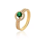 Anel Solitário com Pedras Cravejadas em Ouro Amarelo 18k